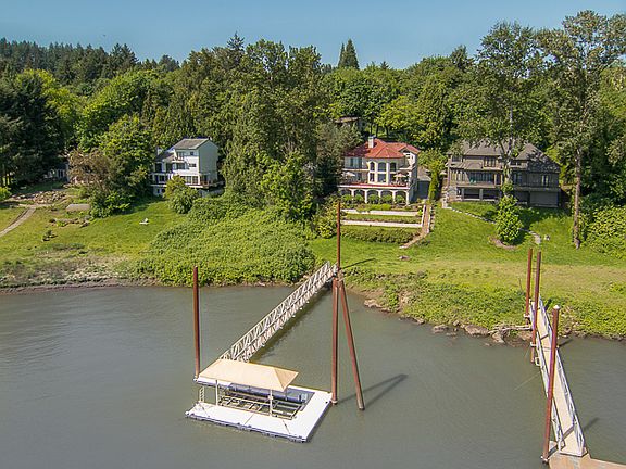 Spectacular Willamette Riverfront Mediterranean modern with a amazing Willamette River View. Upgrades since 2010 include Dock / Covered Boat Lift, Hard Coat Stucco, expansive deck(s), media room, wine cellar and large game/bonus room. Master on the main floor with deck. Spacious garage with lots of storage, camera security system, and secure driveway gate. A must see waterfront home!