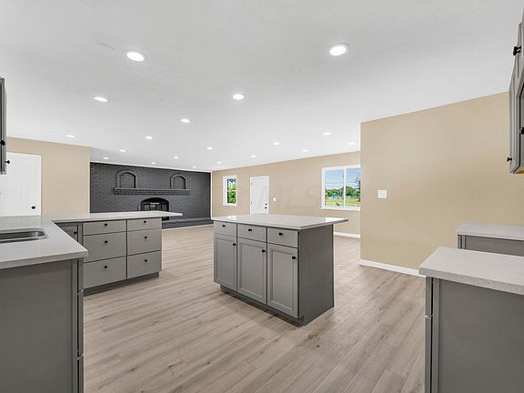 Renovated 3-bedroom 2 full bath brick and stucco ranch on half an acre with South-Western City Schools! A few of the many features include new driveway, full basement with warranty from Ohio Basement Authority, all new kitchen which is open to the great room with brick fireplace, large deck, gorgeous backyard, 2 car detached garage, fenced yard, walkable to the elementary school and close to shopping, dining and entertainment! NO HOA!