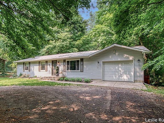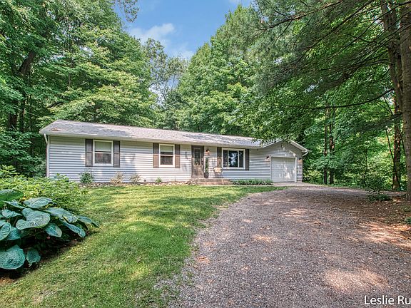 Updated four bedroom walkout ranch with main floor primary suite. The large kitchen with stunning quartz counters has a huge pantry, eating area and snack bar. Main floor has a generous living room, three large bedrooms and an ideal floor plan. Lower level has brand new carpet throughout, spacious family room, 4th bedroom, office space and loads of unfinished storage. Home is situated on just under an acre of land and is conveniently located near Lakes Elementary, Bostwick Lake Inn and near parks/trails. Wooded yard allows privacy to meet convenience.