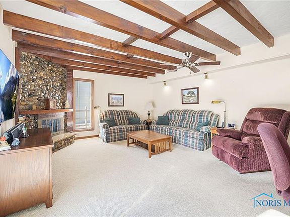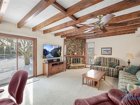 Cape Cod style home in Carmella Gardens. River rock corner fireplace in beamed family room. Covered front porch, Updated oak cabinet kitchen w/newer appliances, coffee/buffet cabinet, dining room & living room in center stair floor plan. Main floor primary bedroom w/2 bedrooms 2nd floor. Full baths on 1st & 2nd floor - bathrooms updated. Newer replacement windows, new driveway & concrete walks,clean dry basement, fenced back yard and 2 car attached garage. Many more improvements - Move-in ready home!