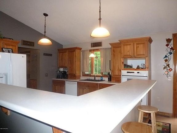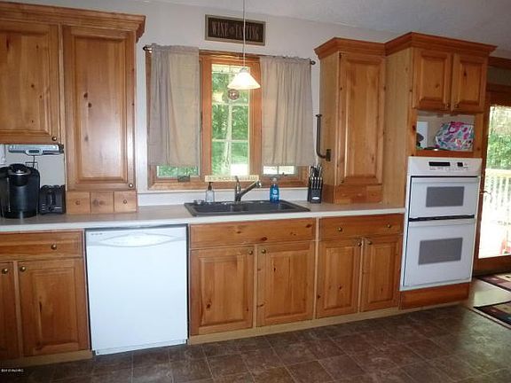Large and private describe this beautiful walk-out ranch with over 2650 sq ft of finished area. The home has a large mudroom between the 2 car garage & the kitchen with a 1/2 bath and attached laundry room with lots of storage. The home features 6 bedrooms and 3 1/2 baths with an open concept kitchen, dining & living room area with vaulted ceilings. The kitchen has a built-in oven, dishwasher and cooktop along with beautiful island snack bar. Main floor master suite with bedrooms 2 & 3 & second full bath. Down the open stairs to the walkout you will find a nicely finished family room, bedrooms 4, 5, 6, & the 3rd full bath. Enjoy the large full main floor deck out back. Landscaped in a very private wooded setting. Just 5 minutes from town. Natural Gas available for hook up at the street.