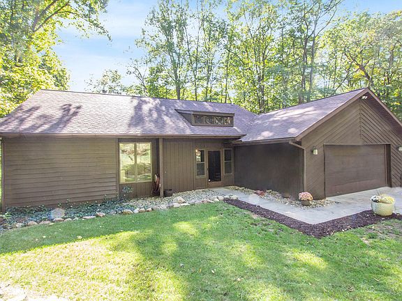 Lovely walkout ranch on a private and heavily wooded 2.6 acre lot in Caledonia Schools! You'll love the picturesque view from this home including a trail through the woods and a flowing creek on the property. Only a 5 minute walk to Ruehs Park for picnics, fishing, tubing and kayaking! The 3rd stall of the garage is setup as a heated/insulated 16x20 workshop with 220V, but can also be used for a car or toys! This home features an updated kitchen with granite countertops, quality cabinets, and plenty of storage; all carpeting on the main floor is brand new, nice vaulted front porch makes a great entry to the home, lower level wood stove is capable of heating the home (though has natural gas), driveway has a turnaround area, 160 SqFt storage shed, and much more!!! Schedule a showing today!