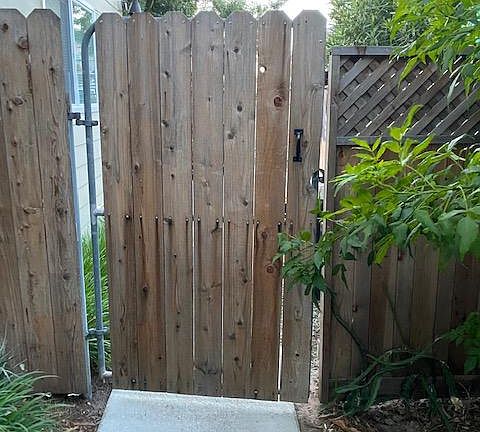 This studio offers a large private fenced yard, shared Jacuzzi, on-site laundry, and substantial off-street parking. On a large flag lot off of Abrego, down the long driveway, next to Fontenbleu apartments, the 600 sq ft studio is peaceful and secluded. Large tiled bath with a walk-in shower and fully equipped kitchen with a full-size refrigerator and tiled counters is very attractive.