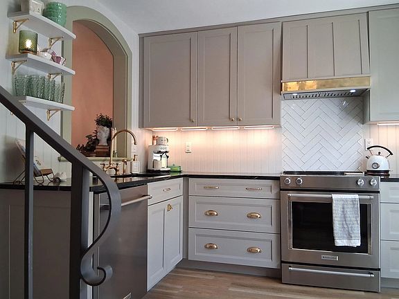 Private patioBuilt-in closet office spaceSoapstone countertopsTimeless brass hardwareNew carpet upstairsQuiet green spaceLibrary shelving