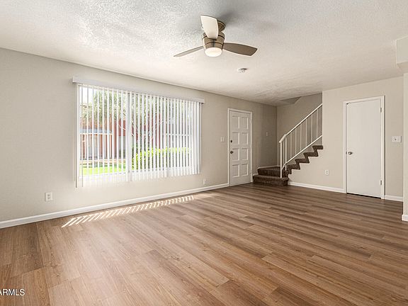 Seeking a sought-after 4-bedroom, 1.5-bathroom residence? Explore the inviting West Plaza Townhome community in Glendale for a home that's ready for immediate occupancy. Highlighting a fresh, dual-tone paint scheme throughout, this dwelling boasts brand new plank and carpet flooring throughout. All bedrooms are conveniently located on the second floor. Upgrades include new ceiling fans and the kitchen has stainless steel appliances. Additional amenities feature a private patio, two covered parking spots, and a storage unit. Residents enjoy access to a community pool and playground, making it an ideal family-friendly environment. Perfectly situated, it's merely moments from bus routes, parks, eateries, and shopping venues.