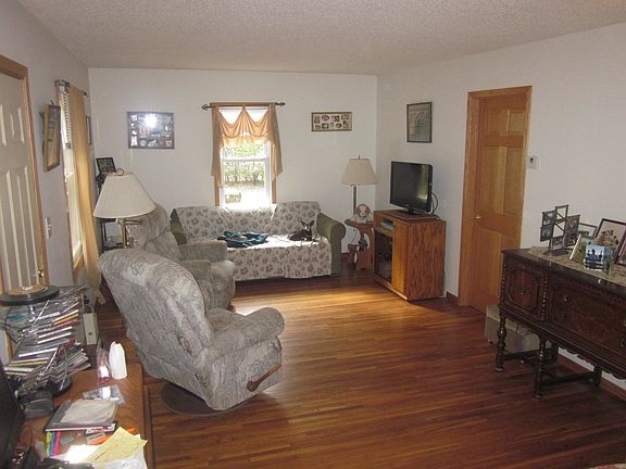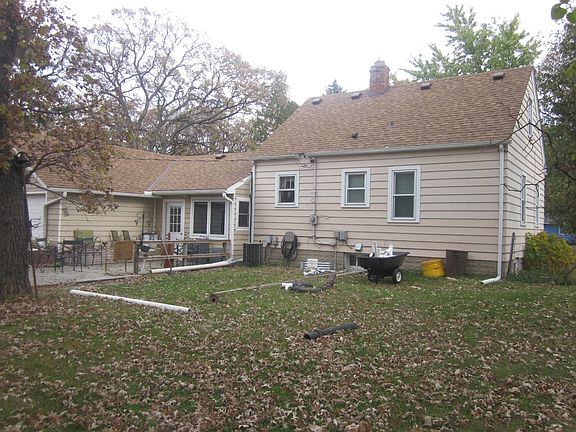 The property features 1335 finished sq ft with an additional 228 sq ft 3 season porch. It has a new roof and metal siding. It comes with a two car double deep garage, an additional separate garage and almost an acre lot.