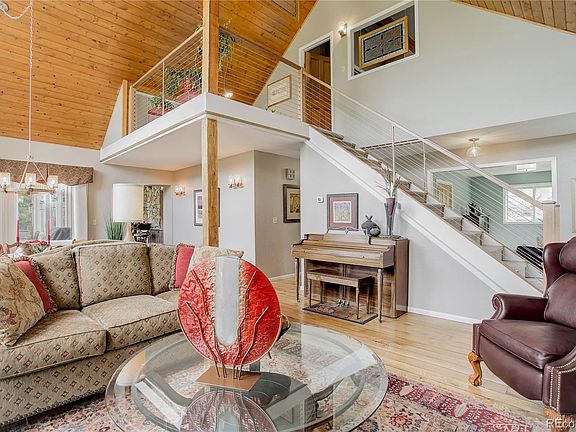 LOCATION, PRIVACY AND VIEWS! PRICE IMPROVEMENT of $95,500.00 This stunning home has been updated with no expense spared and meticulously maintained by the same wonderful owner for the past 36 years. With clean lines and elegant finished throughout, this home is sure to impress the most discerning buyer! The top floor is reserved for the spacious primary bedroom with spa like en-suite bath with radiant heat. The fabulous oversized walk in closet is designed with excellent storage and plenty of hanging space. The top floor also has a delightful space for an office or reading nook with a wonderful view. The main floor features radiant underfloor heating throughout, hand scraped oak floors, open plan living/dining, a den, bedroom, and custom designed full bath. The eat-in kitchen has beautiful stone countertops, granite composite larger sink, newer high end appliances and custom alder cabinetry. Step outside onto the huge trex deck and enjoy mountain views of quivering aspens, forests, and snow capped Mt. Evan’s in the distance. The walk out basement has a living/den area, guest bedroom and custom bathroom with radiant underfloor heat. The non-conforming fourth bedroom is currently used as an exercise room. There are sliding glass doors that lead out onto a quiet, shady patio. This lot is over an acre and has benefitted from professional landscaping with a drip system for the garden flower beds. The smart exterior lighting system, elegant custom blinds throughout, and high end light fixtures are just some of the thoughtful features of this outstanding home.