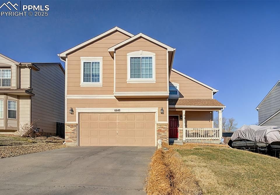 This beautiful 2 story home is the perfect home for your family. Walk in and you are welcomed with vaulted ceilings, a fireplace and beautiful views of Pikes Peak. Upstairs there are 4 bedrooms to include a spacious master with walk-in closet and ensuite. The unfinished basement gives you the potential to make it your own. Check it out today!