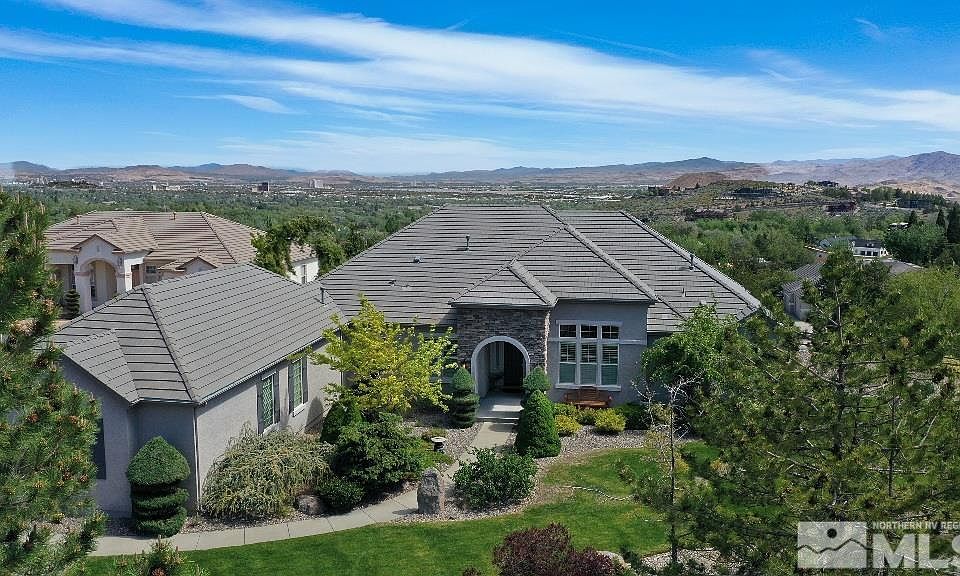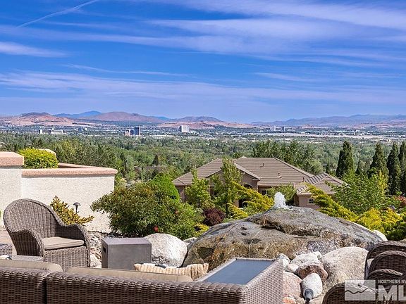 FLAWLESS! This exquisite residence is perched on a ridge with All-encompassing panoramic views of the city lights, our airport, the Virginia Mtn. Range, the entire So. Valley, plus our snow-capped Mount Rose! The superb finish work & attention to detail is unsurpassed! An abundance of slate, granite, travertine, cherry wood cabinetry, bamboo floors & exceptional custom décor! Remarkable landscaping includes a huge paver patio, a variety of plants/shrubs & a diverse selection of trees, including fruit trees., Unique/distinctive lighting and a 14,000+- lb. granite boulder fountain! The Floor plan is Absolutely Perfect with formal dining, a quiet primary suite/retreat! An impressive/stunning "Heart of the Home" Gourmet Chef's Kitchen with all the best you could possibly desire! A welcoming family room with an incredible “work of art” Fireplace! Numerous accesses to the rear of this residence with views beyond belief! Almost one full acre (.89) of professionally landscaped grounds which affords loads of privacy! Located in SOUTHWEST VISTAS. This special residence checks all the boxes!!! See much/much more about this superior residence under “Additional Documents”.