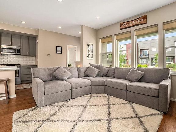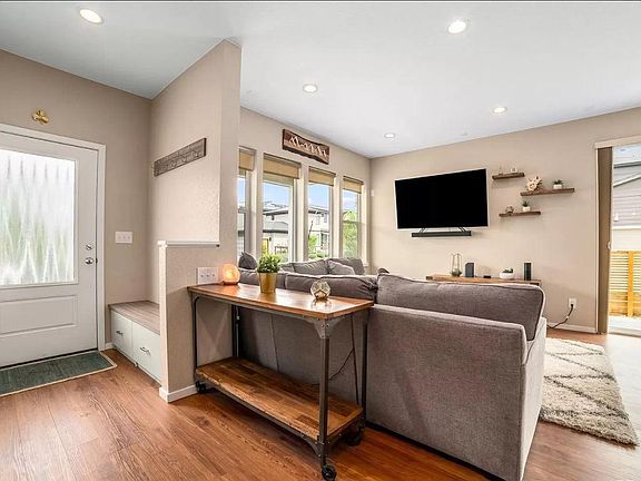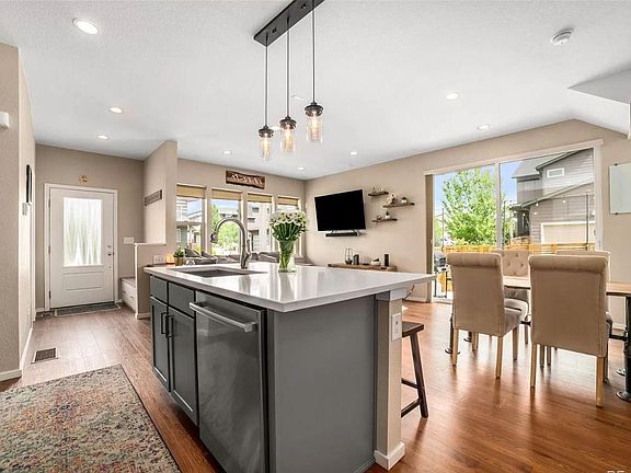 Beautiful Tealight 3 model on corner lot features xeriscape side yard and small green space behind. Inviting front porch and a second level balcony. Finished basement with 3rd bedroom and gorgeous bathroom featuring Koehler fixtures and frameless shower door. Open main level with neutral gray soft-closing cabinets and quartz countertops. Bosch appliances including gas cooktop. Gas BBQ hookup as well. Tankless water heater. Plenty of other upgraded features. 2 bedrooms and 2 bathrooms upstairs plus a loft and balcony. Attached 2-car garage Community amenities include the new Montessori preschool, Trailside K-8 School, Community Center and garden, dog parks, microbrewery, splash pad and multiple playgrounds. Move in ready 06/17/2025. Projected Lease start date 07/01/2025, HOA, trash and water is paid by owner. Tenant is responsible for WIFI and gas/electric. Open to discuss pet optionality. No tobacco smoking.