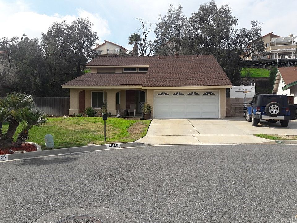 MUST SEE!!! This charming two story home is located at the top of a cul-de-sac in Jurupa Valley, CA with a large lot and RV parking with electrical hook ups It features a large Master Bedroom with a Master Bathroom, Jack and Jill Bedrooms with a remodeled full Bathroom, 1 Bedroom downstairs with a Full Bathroom downstairs. Open concept from kitchen to family room with a brick fireplace. Kitchen has new Dishwasher, Range and over the Range Microwave. Tile and Laminate flooring downstairs and Carpet in all Bedrooms. Surrounded in a family friendly neighborhood, Close to Elementary Schools, Middle School and High School. Also has easy access to the 60 freeway.