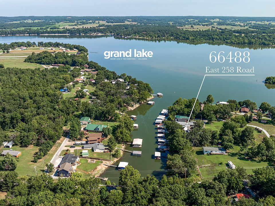 Cozy Waterfront Cabin for a Peaceful Get Away or Full Time Living. Enjoy the Small Community and the Cove where this Property is located on Grand Lake. Enjoy having your own personal dock, 2 decks with sitting areas and grilling area for outdoor entertaining. Living Room with Dining Area and Wood Burning Stove offers you a Comfortable Place to Enjoy being indoors when it's too hot or cold for outdoor activities. Nice Kitchen with Island and Appliances. Full Size Bath on Lower Level. Upstairs use to be 2 rooms and owner made it into one room used for a bedroom. Fenced Area for the Pets, Storage Building and Carport. Close to Grove for Shopping and more!