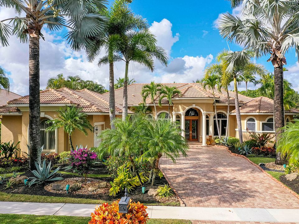 Get your contract in before April 1, 2024 and settle before June 14, 2024 and lock into the old pricing! IMMEDIATE PREMIERE MEMBERSHIP AVAILABLE!!! NEW ROOF!!! Welcome to your dream home! This stunning 4 bedroom, 4.5 bath plus den/office with custom built-ins property boasts luxury finishes throughout. As soon as you enter, you'll be wowed by the extensive coffered ceilings, oversized crown molding, 24x24 Saturnia marble tile flooring with inlays and other elegant touches. The open floor plan is perfect for entertaining, with a spacious living room that flows seamlessly into a large family room which overlooks the oversized pool area. The kitchen is a chef's dream, with plenty of counter space and storage, gas cooktop, as well as, top-of-the-line appliances. The island provides additional counter space and storage, and the quartzite countertops add a touch of elegance and durability to the space. The solid wood cabinetry provides ample storage and a classic look. The recessed lighting and Alabaster pendants provide functional and ambient lighting, and the location adjacent to the den makes the kitchen convenient for daily living and entertaining. Each of the four bedrooms is spacious and well-appointed, with 3 of them en-suite baths for added convenience. The master suite is a true oasis, with a grand master bathroom that is both luxurious and functional. The magnificent jacuzzi tub provides a relaxing and spa-like experience. The Murano glass chandelier and solid onyx sinks add a touch of style and sophistication to the space. The wood closet systems and mirrored vanities provide ample storage and organization. The oversized walk through shower with dual shower heads, new updated vanities and countertops enhance the functionality of the bathroom. The outside windows with custom sand blasted design provide privacy while still letting in natural light. The use of neutral colors creates a calming and cohesive look in the space. The full screen enclosure and large covered lanai, with travertine tile pavers, provide plenty of space for outdoor gatherings and activities. The fully redone summer kitchen includes granite countertops, gas grill, stainless steel storage cabinets and electric sunshade. Custom landscaping enhances the overall appearance and privacy of the area. The recessed lighting and water views add to the ambiance and make the space inviting and relaxing. The fully redone pool and spa provide a great place to cool off and relax. Don't miss the opportunity to make this breathtaking home yours. Schedule a showing today and fall in love with your new dream home!