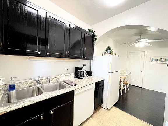 Ample street parkingConvenient garage accessAmple closet spaceNatural lightStucco wallsArched doorwaysOriginal doors