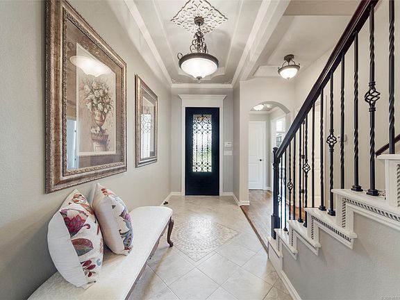 Custom home w/deep over-sized 4 Car Garage w/full size back garage door & large concrete pad allowing you to pull thru. Covered back patio w/extended concrete is perfect for large outdoor gatherings on this beautiful pond lot. As fabulous as the outside is, you'll love the inside of this home with formal dining room. Master+one bedroom down which could be office with high beamed ceiling. Two beds up + Game room w/wet bar/wine fridge PLUS media room w/soundproof floor up. Central Vac & Sprinkler system.