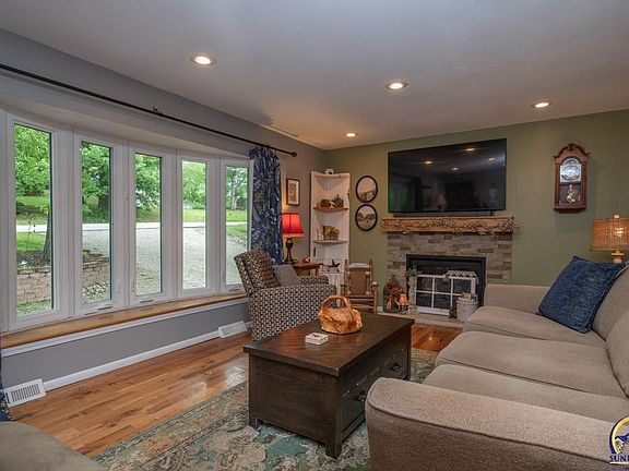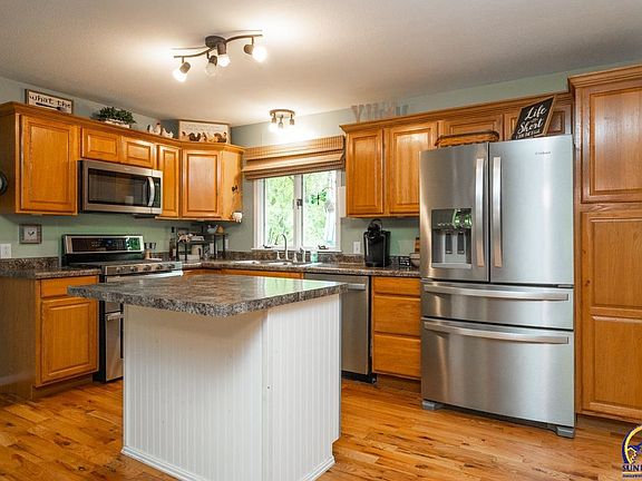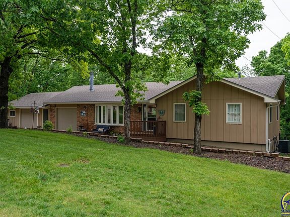 You’re going to love the peaceful charm of country living on this 7.57-acre wooded retreat, rich with native Kansas beauty and bordered on the west by the now-abandoned CRP Railroad. This property is a wildlife lover’s paradise—frequent visitors include deer, foxes, turkey, owls, and a chorus of tree toads serenading you at night. Birdwatchers will enjoy spotting hummingbirds and a variety of songbirds flitting among the prized hardwood trees, including Black Walnut, Shagbark Hickory, and three species of majestic oaks. A scenic tributary of Halfday Creek winds through the land, adding to the tranquil setting and natural appeal featuring a Native stone arch bridge circa the late 1800's.. The home itself is a well-maintained walkout ranch featuring 3 bedrooms, 2 full baths, and a spacious kitchen with a center island and breakfast bar. Enjoy the upgrades of brand-new stainless steel appliances including a gas range, refrigerator, and dishwasher. The main floor also offers a laundry room with a sink for convenience. Downstairs, a light-filled finished family room offers a welcoming space to gather, along with a walk-out basement that includes a full bath and a large storage room—perfect for converting into a 4th bedroom. Step out to the lower-level patio while taking in the quiet sounds of nature. The upper deck is ideal for sipping morning coffee or stargazing on clear Kansas nights. A newly fenced yard offers space for a garden, children, or pets to roam safely. Storage and utility are no problem with an attached garage featuring workshop space and a 30x24 detached garage with electricity—perfect for recreational vehicles, boats, or trailers.