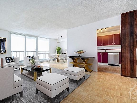 Spacious & Bright 2 bedroom, 1 bath suite with unobstructed views of Parliament Hill. This unit has been exceptionally well cared for and offers L-shaped living/dining room with built-in bookshelf, gleaming parquet hardwood floors, and floor to ceiling windows with patio door access to balcony. The Kitchen offers stainless steel appliances, abundance of cabinetry and counter space. The primary bedroom offers skyline views and is complete with a generous closet and walk-in storage closet. The secondary bedroom has handy built in cabinetry and laminate flooring. Exceptional location to Mont Fort hospital, CSIS, CMHC, Blair LRT and 10 minutes to downtown Ottawa. The condo building is undergoing extensive renovations in the common area with stylish tile, carpet & neutral paint tones. 2021-12-30
