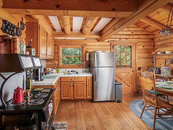 Meandering asphalt driveway leads you to this Charming 1992 1,212 sqft Log Cabin on a beyond super private 11,600 sqft Wooded Setting with Overhung Porch and Rocky Chair Entry! Main Level consists of Master Ensuite, Peg Oak Flooring, Eat-in Country Kitchen, Vaulted Ceiling Living Room, Laundry Area and 2nd Bath and upstairs Cozy Secondary Bedroom. If you looking for a place to call home, to rest and relax and be part of Nature than this is the retreat to do so!