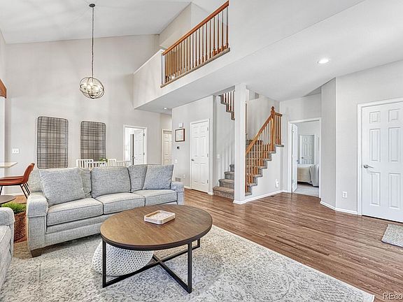 Beautifully remodeled end unit 2 bedroom + loft townhome in the desirable Canterbury Park neighborhood! Gorgeous and ready for you!Open concept kitchen with new and refinished cabinetry with quartz countertops that leads out to a beautiful, private patio great for BBQ and entertaining. Main floor has a primary suite and a secondary bedroom with fully remodeled bathrooms with new cabinetry, updated tile, quartz countertops, and fixtures. Upstairs has a half bath that has also been fully remodeled, a desk nook and a large loft space that could be used for entertaining, an office, or finished for a 3rd bedroom. New paint and lighting throughout and beautifully refinished hardwood floors. Partial basement ready for your finish. Attached two car garage! Enjoy the serenity of a quiet end unit! Walk to community pool, pickleball, tennis, and basketball courts, nearby trails and Buffalo Ridge Elementary School. Close proximity to The Ridge Golf Course, I25 and the DTC. Don’t miss this one!