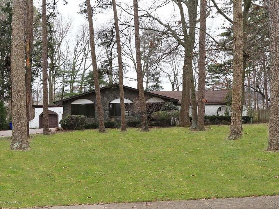 This unique 4 bedroom, 2 1/2 bath single level home is set on an enormous private wooded lot. Features include private courtyard, family room, living room, dining room, large master suite, large basement, large rear sunroom, in-ground pool, private backyard, newer central air, hot water baseboard heat & two car garage. Large property consist of two lots, 10 & 10.01. Keep the whole property or sell off the front lot to use towards updating. Lots of options here.