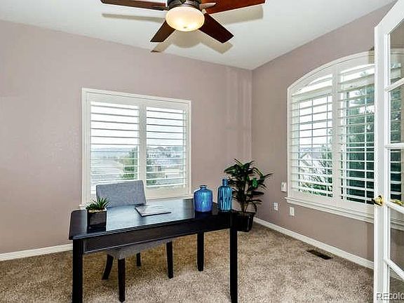 Views of the front range and Castle Rock welcome you home. Stunning ranch style home with fresh paint and brand new carpeting throughout. This home features a large gourmet kitchen with granite counter tops, tile backsplash, and full laminate flooring. New stainless steel appliances, double oven, large pantry and extended maple cabinets. The master suite, bedrooms, and laundry room are all situated on the main level, providing convenience for everyday living. Other features include: plantation shutters, ceiling fans and vaulted ceiling. The spacious dedicated office means a bedroom doesn't have to be sacrificed for this use. The garden level, finished basement with 1/2 bath has several windows with plantation shutters that are completely above grade providing plenty of natural light. The basement is pre-wired for HDMI. The basement also boasts a spacious carpeted closet for out of season coats and boots with plenty of shelving. And, for all your storage needs there is a 2nd large dedicated storage room with sturdy shelving. This home is situated in a quiet neighborhood and on a cul-de-sac yet is only minutes from I-25 and downtown Castle Rock. Enjoy the views from your deck on a warm day or warm up by the fireplace in the living room in the winter. This is home.