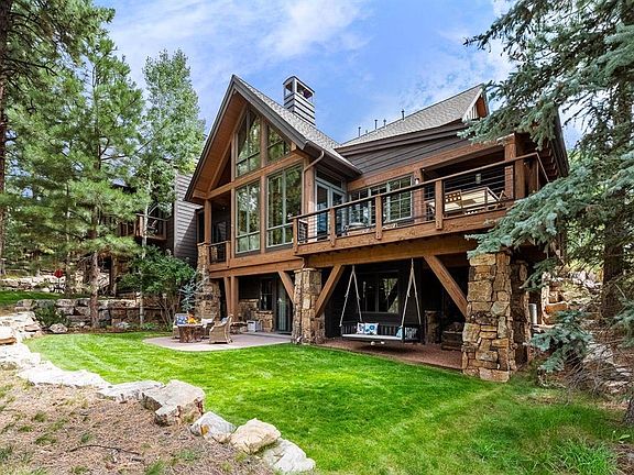 Sitting on the 18th Fairway, huge Hermosa Cliff views, a slice of heaven amongst world class golf at Glacier Club, this showdown unit offers usable space for entertaining, high-end well-appointed finishes, turn-key & fully furnished…luxurious living on the golf course. Four bedrooms, 4.5 baths, three spacious levels of living each with their own living space, fireplaces, game room, state of the art theater room, natural light and views out every window. Upon entry, you’ll be greeted by the stunning living space with living, dining, and kitchen combined for an open entertaining space with soaring ceilings with massive wood beams framing the room. The wall of windows flood the space with natural light while offering breathtaking views of the course and mountains. At the heart of the living area is a rock fireplace for the cool winter nights. A chef’s dream kitchen, boasting multiple counter finishes with black flat granite and black & gold-streaked rough-edged island, providing a modern, sophisticated touch with dimensional silverleaf mosaic travertine backsplash. With ample counter and cabinet space, this kitchen is perfect for preparing meals or hosting gatherings, top-of-the-line appliances include a Sub-Zero refrigerator and Wolf stove. The primary bedroom, conveniently located just off the living space, offers a serene retreat with its own private fireplace. Large windows frame serene views of the golf course, bringing the beauty of the outdoors in, featuring a large walk-in closet and luxurious ensuite bath is finished with sleek granite surfaces and high-end fixtures, ensuring a spa-like experience in the comfort of your home. Upstairs, a versatile loft area offers the perfect space for an office or a cozy TV nook. This level features two spacious bedrooms, one of which includes a private guest bath, providing comfort and privacy for visitors. A well-appointed hall bath and ample closet space complete this floor, making it both functional and inviting. In the light and bright walk-out basement, luxury living is extended with a variety of spaces designed for entertainment and relaxation, also open to the back patio bordering the 18th fairway. The lower level living space, featuring the third fireplace, complete with a wine bar and fridge, and ample room for a game table. Quite possibly the showcase of the basement level is the state of the art theater room with leather recliners fit for your 6 favorite friends. The 4th bedroom and spacious guest bath finish off the basement area, in addition to a dog cubby and future wine cellar or storage room. Finishing off the interior of the home is a spacious garage, laundry/mud room, pantry space, and a golf cart garage. The outside living of this home is impeccable, with multiple outdoor spaces perfectly placed to enjoy Colorado mornings, evenings, sunsets, and winter storms rolling in. Perfectly situated and just a short walk to the Mountain clubhouse offering fantastic dining, swimming pool, hot tub, access to 36 holes of mountain golf, tennis or pickle ball. The Valley clubhouse offers a fitness facility, pools, hot tub, park, and play area. Quick 8 minutes to Purgatory for summer or winter entertainment, easy commute to downtown Durango for dinner, living in one of Colorado finest golf communities in the San Juan Mountains.