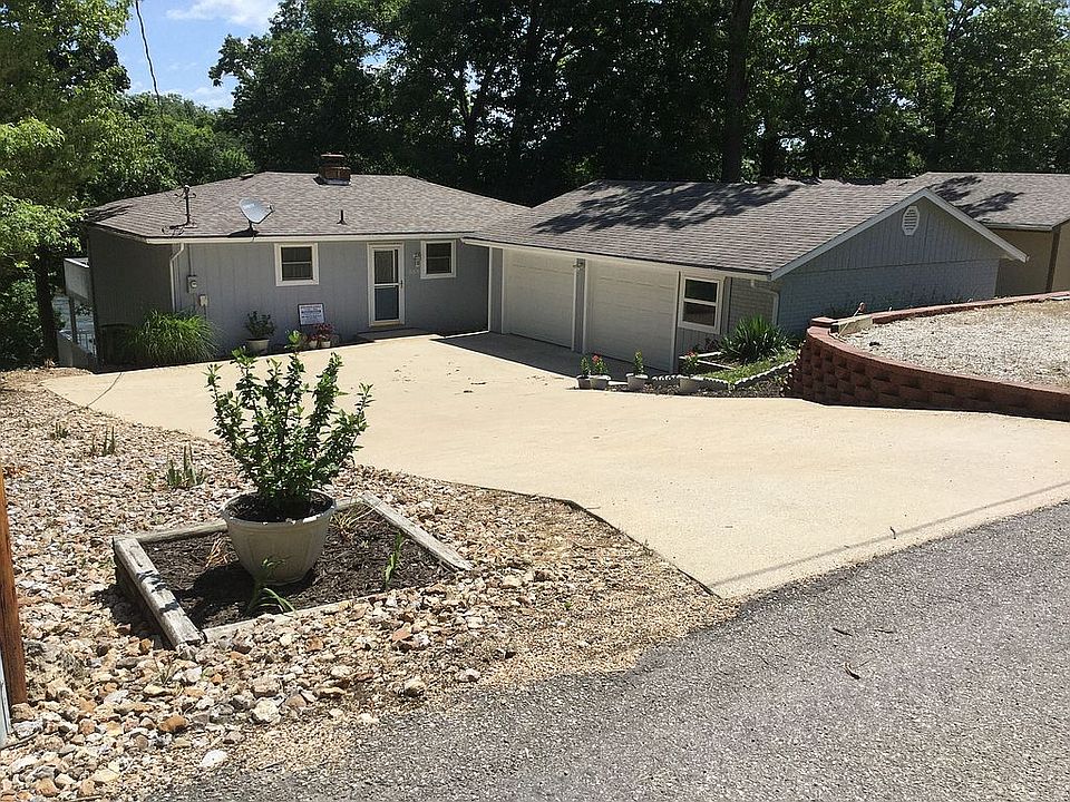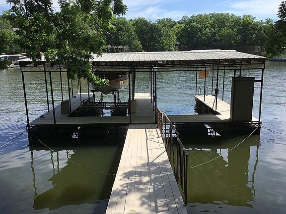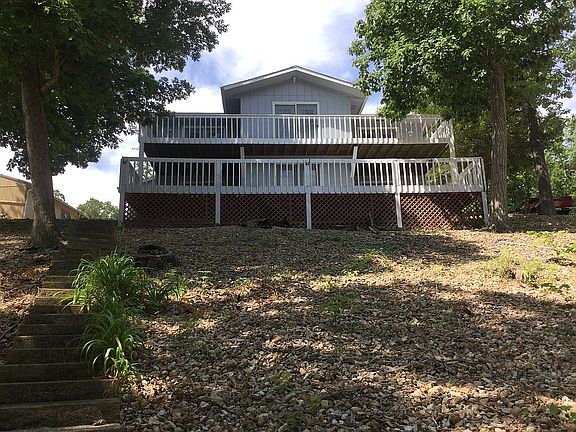 This charming cottage is on an average slope lake front lot in a deep water cove of a friendly, well kept neighborhood. The neighbors are an equal mix of permanent and part time residents with HOA rules prohibiting rentals which makes the neighborhood very stable The three bathrooms were completely remodeled. All three large bedrooms have Pella EnergyStar French doors that lead out to the deck with Lakeview. The focal point of the living room is a native stone fireplace with built in wood grate and electric blower to disperse heat. There is also a whole house fan for excellent air flow and a heat pump that was new in 2012. The roof was new in 2013. Their was also a new septic tank installed in 2013. The 2 slip dock has one 30 foot slip with a new lift control and a second slip that is 24 foot slip. The dock is in good condition and well suited to medium size boats and wave runners. A rare bonus is the 2 1/2 car garage remodeled in 2019 to allow machine and furniture storage as well as vehicles. Many people have asked about our steps to the dock. We are on a deep water cove which means you will have steps. The fewer steps you have the more shallow the water and therefore the better chance for low water at your dock in the winter. The gentleman who owned our house before us was elderly with COPD. He walked the steps to fish off the dock until he passed. There are 72 half steps (5” steps) on a rise equivalent to 36 steps. This Home is offered by a former Missouri Realtor and a retired Federal Construction inspector. Daily viewings by appointment. Open House Sunday 11-3. Realtors welcome to one time/client showing for 3%. Face masks required to view home