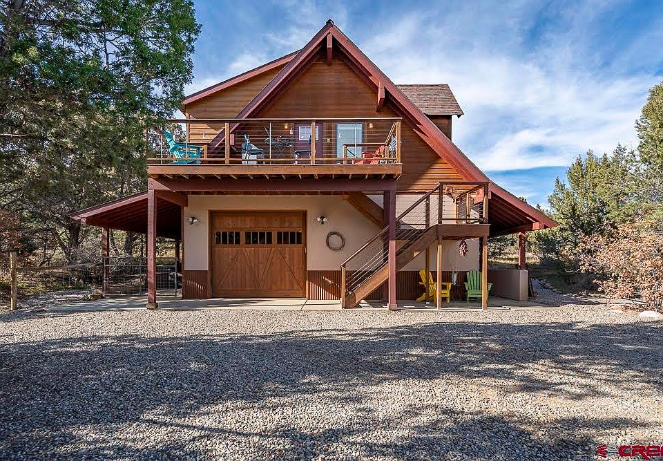 Beautifully maintained home on just over 6 acres only 15 minutes to downtown Durango! Come see this cozy 2 bedroom, 3 bathroom home with horse barn, privacy and minutes to Horse Gulch trail system and the hospital. Built in 2002 and remodeled in 2017 this home offers a move in, ready to start living lifestyle with one bedroom downstairs on the ground level, which can double as an office or flex space. The laundry room and a 3/4 bath are also on the ground level next to the 2 car garage with in slab heat, fully finished and bonus space at the back which can be easily transformed into additional living space. Head upstairs for views, space and comfort. The outdoor deck at the main upper level entry provides lovely views to the east and morning light. The open living space flows easily to the kitchen with professional grade gas range, silestone counters and under mount stainless steel kitchen sink. You'll find hardwood floors throughout the upstairs. The large main living space offers several options for configuring living and dining. Off the main living space is a powder room with linen storage, and the primary ensuite bedroom. The roof was popped in 2017 to add more usable space to the primary bedroom allowing for a large walk in closet and full master bathroom. All new windows were added on the upper level when the roof was popped. Stay comfortable year round with in floor heat for chilly winter days and a Fujitsu mini split to keep you cool in the heat of summer. Take comfort in the knowledge of your own personal Generac generator hard wired to take care of any unexpected emergencies. Head outside to roam the 6 acres with horse barn and hay storage and a fenced horse paddock. Septic is rated for 4 bedrooms making it easy to expand! Easy to show.