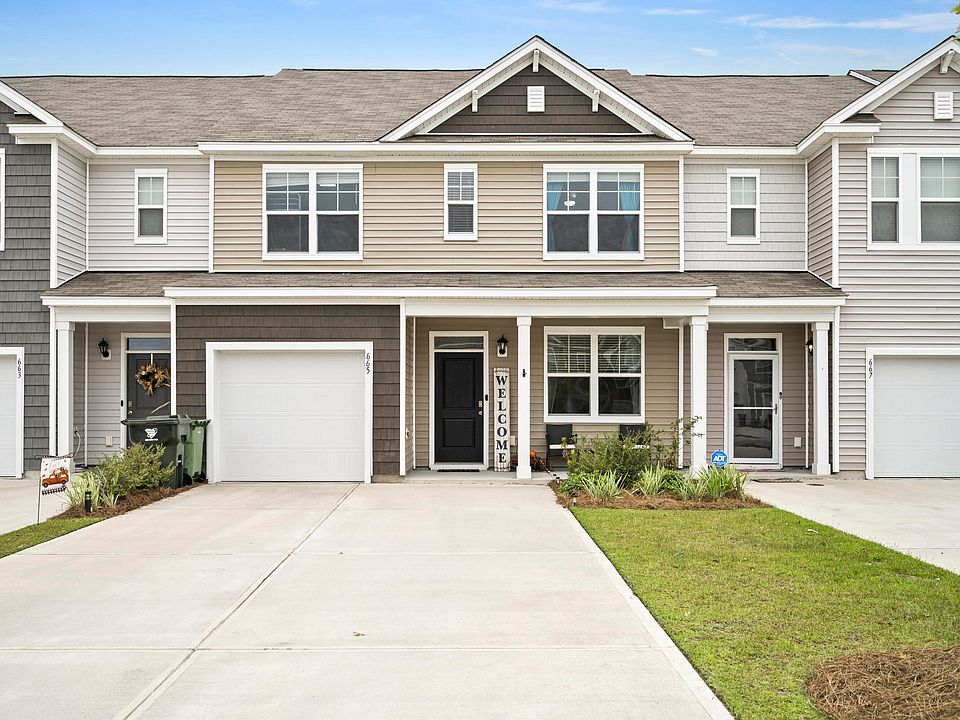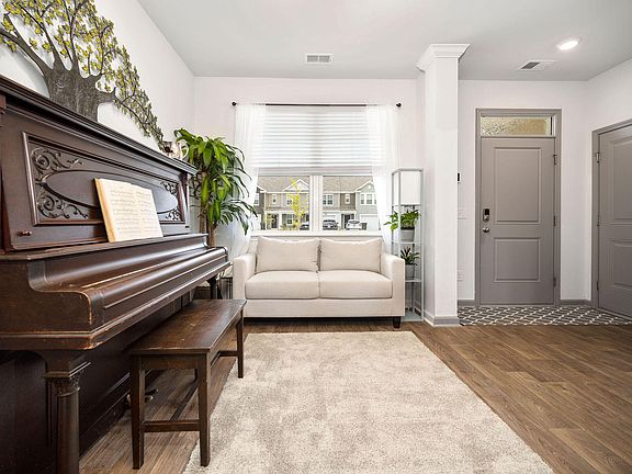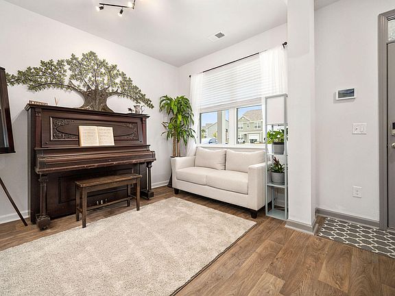 This beautiful well maintained open floor plan has 3 bedrooms and 2.5 bathrooms. As you enter, you're greeted by gorgeous luxury vinyl plank flooring, and vaulted ceilings. This home is great for entertaining with a formal dining room flowing into the kitchen that overlooks the family room. Leading out back will be greeted with a screened in porch. The first-floor owner's suite features a tray ceiling, a walk-in closet, and a large private en suite, with a dual vanity and a walk-in shower. Heading upstairs is a loft, 2 bedrooms and a full bath. This home comes with a 1 car garage and large driveway. Meridian amenities include: a resort-style community pool, a clubhouse/pickleball court, a playground, fire pit, fully stocked ponds,walking trails and access to a 300 acre lake.