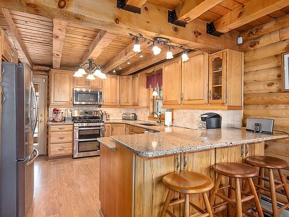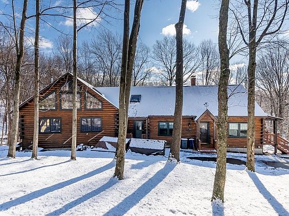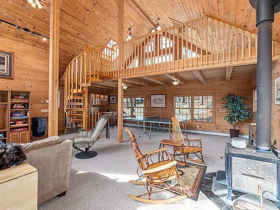 Adjacent to Cherry Hill Farm, you will find a gorgeous log home that boasts uniqueness and New England rustic-charm. Wow your friends and family in the 28 by 30 great room which has breathtaking cathedral ceilings, plenty of natural light, a wood stove, and a spiral staircase to a loft for additional entertaining space. The 3 Season porch which overlooks the beautiful wooded back yard is ready for socializing with friends, coffee in the morning, or cocktails at night. The kitchen offers stainless steel appliances, updated kitchen cabinets, and quartz counter-tops. Stay warm by the woodstove in the living room and enjoy reading books in the additional loft off the office. The heated 2 car garage has an extra bay for your motorcycle, tractor, or a lawnmower and there is a separate room for storage. Overlooking the back deck is a separate room ready for Jacuzzi tub or a work out area. The finished basement has a workshop and an additional bonus room with a 1/2 bath. A must see!