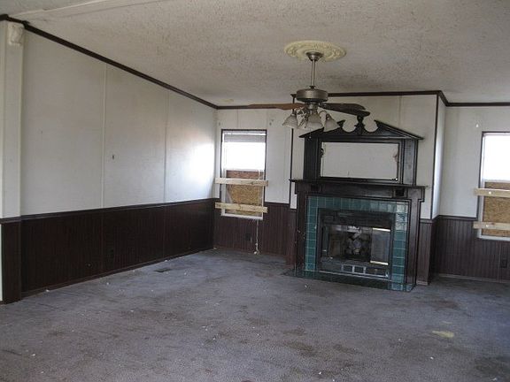 This home features 5 bedrooms 3 baths situated on 1 acre lot. Covered front porch to enjoy sitting and looking over country side view. Buyer to verify all information property is a foreclosure. Water is unknown, sewer unknown and easement unknown. Front right corner of house and part of front porch is encroaching on someone else property. There are no know recorded easement to property.