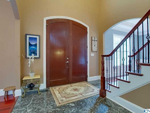 It's all about the VIEWS with this extraordinary estate home situated on 6.8 private acres! Impressive double entry doors open into elegant Foyer where gleaming Brazilian cherry hardwoods and soaring ceilings flow throughout main level. Grand Family room boasts gas log fireplace - central to Kitchen and Dining rooms. Master retreat offers spa like bath featuring jetted tub and two walk in closets. Upper level with maple flooring throughout! Bonus room with ensuite bath! Very private back yard with lush foliage - entertain with ease in this natural oasis. Basement room ideal as storm room and storage area. Desirable location mere minutes from interstate and downtown Huntsville!