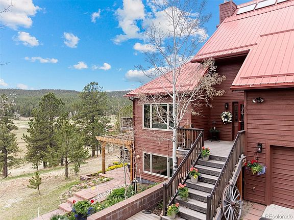 Commanding a premier position above the valley with awe-inspiring views of the sun-drenched meadow and the iconic Lion’s Head, this is the kind of setting that stops you in your tracks and stays with you long after you leave. This extraordinary custom-built residence in Pine, Colorado, offers a rare blend of refined mountain living and everyday comfort. Situated on 3.7 acres with Elk Creek meandering through the southern edge, the home is a true sanctuary, inviting you to experience nature, privacy, and craftsmanship in perfect harmony. Post-and-beam construction and soaring architecture evoke timeless mountain elegance with a modern edge, while skylights and nearly all-new windows flood the home with natural light. Expansive new Andersen sliding doors open to multiple decks designed to capture the surrounding beauty—perfect for morning coffee or quiet evenings under the stars. Daily wildlife sightings, starlit soaks in the hot tub, and lovingly tended flower beds with a greenhouse elevate the outdoor experience. Inside, the hickory hardwood floors, handcrafted walnut slab island, artisanal lighting, and quartzite countertops all speak to the home’s attention to detail. Every bathroom has been expertly reimagined with designer finishes, and flexible spaces throughout include an inviting living room with woodstove, a bonus room, and areas perfect for work or play. Please request the complete list of upgrades from the listing agent—there are far too many thoughtful details to list here. Car enthusiasts and hobbyists will love the 3-car attached garage and a detached 3-car garage with a heated upper level—ideal for a studio, gym, or workshop. This home is a dream for outdoor lovers: just minutes to Staunton State Park, Elk Falls, and countless hiking and biking trails. Peaceful, private, and endlessly inviting, this is more than a home—it’s the mountain retreat, creative haven, and forever home you didn’t think you’d find. Come experience it in person.