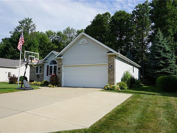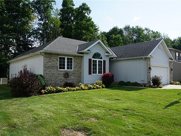 Welcome to this immaculately maintained, beautifully landscaped, 3 bedroom, two & a half bath ranch home located in the Misty Meadows subdivision. Master bedroom & master bath sit on one end of the home with the carpeted ('14) living room, separating the other two bedrooms & second full bath. Enter the Laundry room from the attached 2 car garage where both Hot & Cold water are available. The home hosts an open, bright, eat-in kitchen & separate dining room with laminate flooring. Ceiling fans in bedrooms, kitchen & living room. The following appliances stay: stove '17, microwave '16, dishwasher '13, washing machine '16, dryer '17 also basement refrigerator and freezer. Off the kitchen is a 14x32 deck overlooking the spacious back yard with mature trees & 12x12 brick patio for fire pit. Three deck umbrellas, flag pole & basketball hoop stay. The property hosts a 12x20 Amish built shed ('15) including inside electric with natural light from skylight window. Huge partially finished & carpeted basement with glass block windows provides extra space for entertaining and tons of storage. A workshop & half bath can also be found in the basement. Home also features a 2011 Generac hard-wired generator. Other updated mechanics include sump pump '15, Lennox furnace and AC '15, and platinum Rheem 60 gallon HWT '14. The roof has 25-year guarantee ice damn cables with their own breaker ('15). Gas line & electric line available for heated pool or hot tub. Schedule your private showing today!
