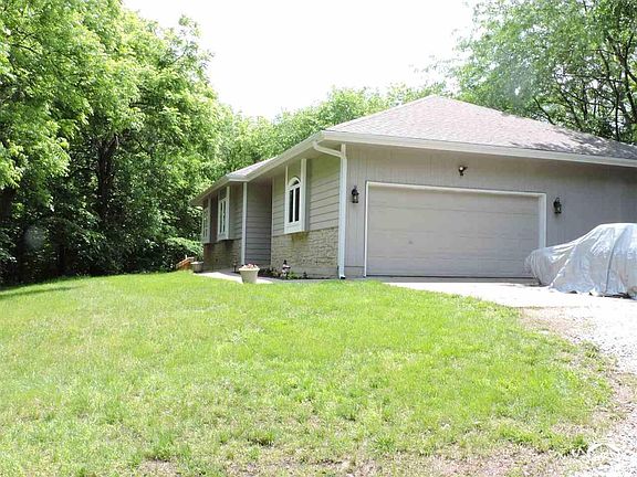 Secluded Clinton Lake Estates 4 bed ,2 bath, 2 car garage, Hard wood floors throughout the first floor. New flooring in the basement Family room. Full partially finished daylight basement all on 3 acres just minutes west of Lawrence.