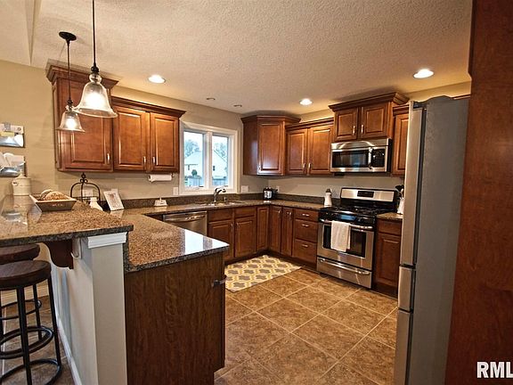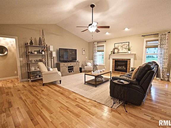 Gorgeous 4 bedroom home in desirable Lost Grove Acres. Over 3000 square feet finished in this immaculate ranch with TWO fireplaces. Open floor plan with vaulted ceilings, sliding door in dining room walks out to a large flat backyard makes it perfect for entertaining in & out! Kitchen offers tons of counter space, upgraded designer light fixtures. Large master bedroom has a huge walk in closet and double vanity in bath. This home has been well taken care of, and it shows! 1300 sqft was added with professional finish that includes a oversized rec room, separated by a half wall there is a flex space with an egress window that would be a great office, also a custom bar, stylish 3/4 bath, 4th bedroom and a bonus room that is currently set up as a workout room. This North Scott home has it all, and less than a block away from the elementary school. Enjoy the close proximity to the Mississippi River and Lost Grove Lake! 10 minutes to I-80 and equidistance to Quad Cities and Clinton.