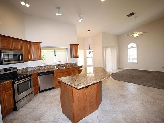 Fabulous North Mesa home located in the desirable Highland Park neighborhood, with NO HOA!!The single level home features 4 very spacious bedrooms all with newer carpet. Cathedral ceilings and ceiling fans throughout. The master suite is incredible with a separate exit to the back yard. Master bathroom has dual sinks, a separate garden tub and shower and a large walk in closet. The upgraded kitchen with granite counter tops and a smooth cook top range over looks the large great room. The home also includes a formal dining room and living room.The easy care back yard has a huge shade tree and two citrus trees. No neighbors behind you so you can enjoy your morning coffee listening to only the sounds of the birds. There is plenty of room here for your toys with the 3 car garage and RV gat