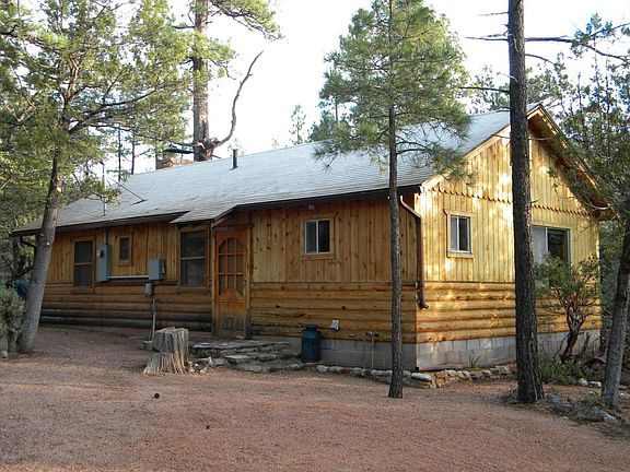 Rare opportunity in Nat'l Forest for this charming & comfortable cabin on 1-acre in the tall pines nestled at the base of the Mogollon Rim. Ellison Crk Homes(EC)is (60)1-ac lots with 82 acres of common area intermingling between & around lots --covers 142 ac surrounded by Tonto Nat'l Forest. BEAUTIFUL HARDWOOD FLOORING thruout, living rm, master bdrm windows & front porch look out onto Nat'l Forest! RELAX inside by the fireplace or outside on the large covered front porch. Large walk-in cedar closet+apprx 6'x12' laundry rm WITH W/D hookup+storage cabinets. Great area for hiking, fishing, boating or just watching the hummingbirds, elk & breezes in the trees!