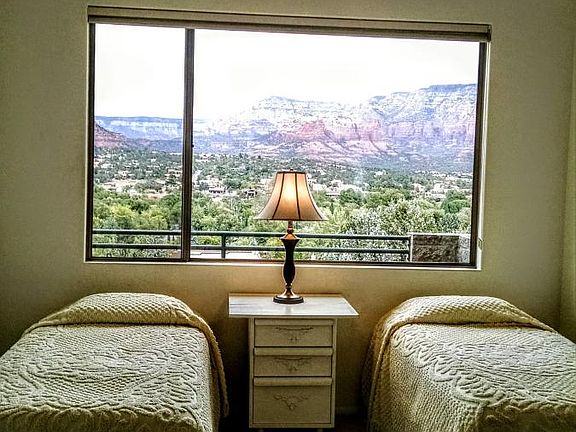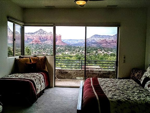 This 3 bedroom, 3 bath home is exclusive! Fully Furnished with 180 degree, incredible, panoramic views of Red Rock! Enjoy the views on the multiple, private and quiet patios. This home is snuggled beneath the large trees, near the national forest and beautiful red rock mountains. Partake in the fantastic hiking and bike trails nearby. Enjoy the tourist attractions, shopping, the famous Tlaquepaque, golf, restaurants and all uptown Sedona has to offer. You're a speedy 5 minutes from the Sedona airport and 20 minutes from slide rock. The house is kid friendly. A gas BBQ is available for use for cook outs or enjoy the state of the art kitchen equipped with what any chef might need! This is truly a special place to experience Sedona. Weekly- $800.00 and Monthly- $3400.00 Fully Furnished!