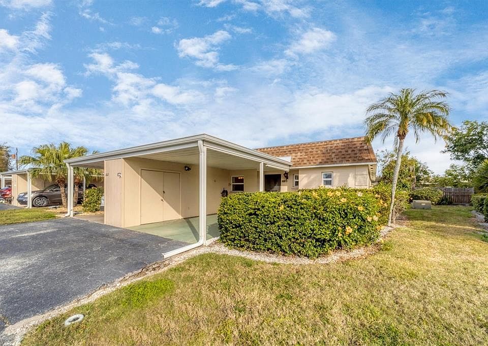 Escape to the Florida sunshine with this affordable gem! Welcome to the perfect villa, ideal for a winter retreat or year-round living. Nestled in a friendly 55+, pet-friendly community, you'll find yourself just steps away from the heated pool and clubhouse, perfect for socializing and relaxation. This Park Acres villa boasts a spacious living/dining room combination that's perfect for entertaining or simply unwinding after a day of fun in the sun. The open space continues as you step into the light filled Florida room complete with a convenient Murphy bed for any drop-in guests, ensuring you're always ready to host. The bedroom with ensuite bath provides a serene sanctuary, featuring triple closets and a dressing area for added convenience. An extra 1/2 bath off the entry hall adds to the practicality of the space. The attached carport is right at your front door giving you protected access, with a large storage room for your bikes and toys, or to use as a workshop for those who like to tinker. Park Acres offers an active clubhouse and a heated pool, adding to the vibrant community atmosphere. Conveniently located near shopping, restaurants, and the Sarasota-Bradenton International Airport, this vibrant, active community is the epitome of Florida living. Whether you're seeking a new getaway or your dream retirement home, make this charming villa your next destination!