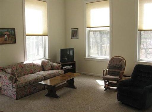 Unique upscale Condo.....(former Pratt School.) 12'+ vaulted ceilings, well maintained attractive buildings and grounds. Large rooms, open floor plan, bright, airy Unit...huge windows, ample closets. laundry area within unit, Attached large private deck, 2 entrances, convenient location...Close to everything! Updated carpeting, vinyl kitchen flooring, HW heater, and heat pump. Live in luxury for far less than rent! Pets up to 40lbs.OK! Excellent storage includes area in base.