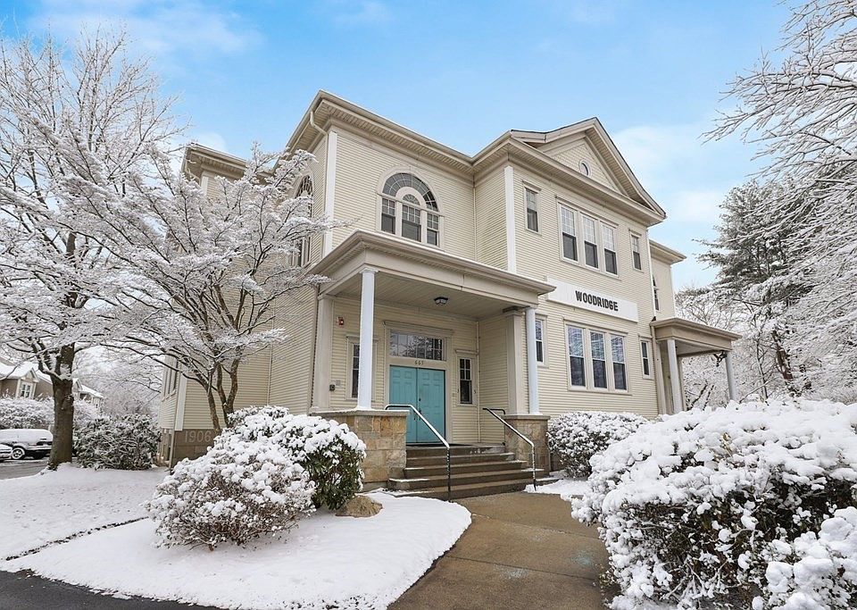 Don't miss out on this rarely available 2 bedroom unit at Woodridge Condominiums in the former Pratt elementary school. A fantastic commuter location, this wonderful pet friendly condo unit features huge windows throughout, 11.5 foot vaulted ceilings allowing endless natural sunlight. A galley kitchen leads into a nice dining area and spacious living room. There are 2 large bedrooms with brand new carpet, 1 bath, and in unit washer/dryer hookup. Also featured is a large private deck on the rear of the building, common landscaped grounds with dog run, and ample private and secured storage in the lower level. Unit includes 2 deeded parking spaces, and ample visitor parking. 100% owner occupied/Rentals are not permitted.