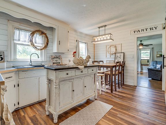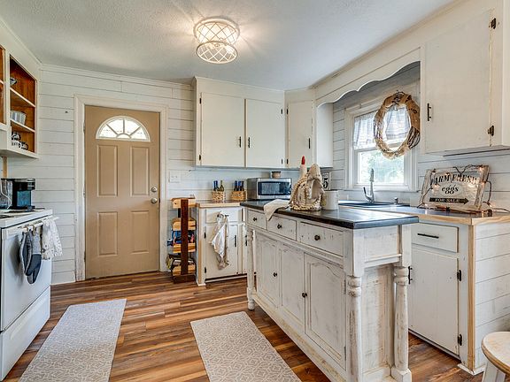 Each room has new fixtures, baseboards, and paint. You will love the new LVP flooring in the kitchen and sliding barn door that completes the farmhouse feel. Walk into the living room and you'll notice the room full of natural light from the large window and the rich original hardwood floors. Take your seat and enjoy the mountain view.