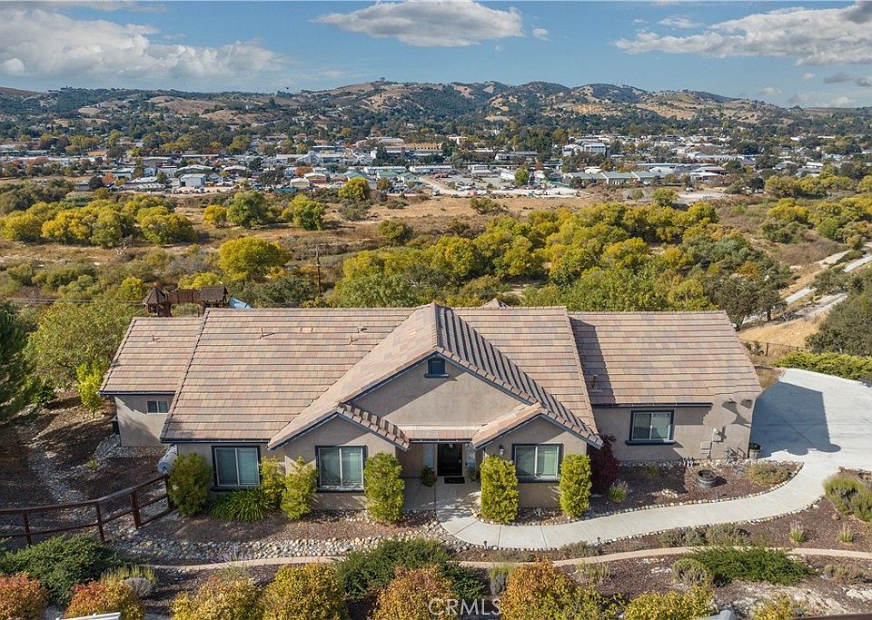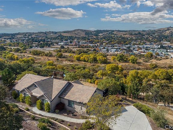Live the dream! This exceptional property has it all; panoramic views, privacy and a beautiful, newer custom home, situated on over ¾ of an acre. The single level home, located on a hilltop, was designed with multiple view windows and a large west facing patio from which to enjoy Paso Robles sunsets and unobstructed views of city lights. There is 2096 +/- sf. of living space with an open floor plan, vaulted ceilings, granite counter tops, stainless steel appliances, super large master suite plus three additional bedrooms and full bath. The oversized, two car, finished garage has room for a personal gym. The well-maintained, expansive yard has multiple fruit trees, a majestic oak and a double-decked 10’x12’ storage shed to complete this fabulous property. There are numerous, easy access walking paths in the area, all located within just a few minutes from downtown Paso Robles.