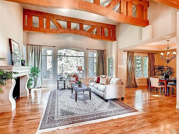 Quick close and possession for this superior home! Simply serene location among the treetops in the Village at Castle Pines. As you first enter the home you are swept away by the privacy of living among the trees. Mountain Views further compliment the location of the home. Solid wood open-beam ceilings, pristine hickory floors, and two show-stopping stone fireplaces complete the feel of being in a mountain home location. This custom home nestled among the pines on nearly 3/4 acres offers privacy with incredible mountain and sunset views, spacious entertaining areas and a large multi-level deck with electric deck heaters and fireplace. This four-bedroom, seven bath home is designed for those wishing for a quiet moment away from the hustle and bustle of the day or for ease of entertaining a large group of family and friends. An easily converted loft area can become 5th bedroom with closet and bath. Live the ideal Colorado Lifestyle in the esteemed Promontory Neighborhood in the secured master planned Golf Community within the Village at Castle Pines. Buyer to verify sq ft, HOA and amenities. Too many amenities to list and only 15 minutes to DTC, and 35 minutes to DIA. Listing Agent is an Owner/Agent.