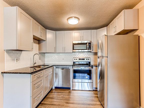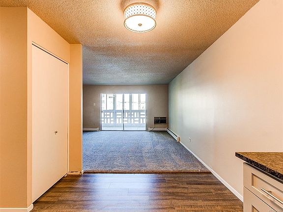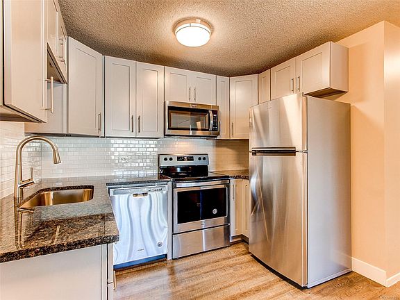 Updated condo. Popular floorplan including large family room with access to balcony , updated kitchen, oversized bedroom with lots of closet space and one full bathroom. Lots of updates including white kitchen cabinets stainless steel appliances, tile backsplash, New flooring, light and plumbing fixtures, vinyl slider door to the lanai to be added prior to closing, two digital wall a/c units and much more. Large storage room on the same floor and one car detached garage. Great location in the Denvers largest adult living( age 55 plus) golf course community. Monthly HOA include property taxes, water, heat, clubhouse featuring indoor and outdoor pools, fitness center, hot tub, sauna, billiards, discounted golf, a restaurant, classrooms for sewing, ceramics & glass, art & wood carving, dance classes, live theatre or movie nights in and Auditorium. A block way from RTD bus stop and mini mall shopping center.