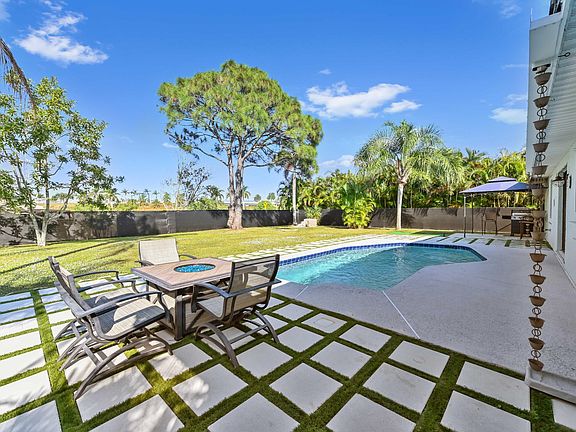 Gazing into the backyard, you will be reminded of the tropical beauty that South Florida offers. The private pool is the perfect focal point, surrounded by stylish pavers that substantially increase the outdoor entertaining area. The Patio was also updated in 2024, enhancing your enjoyment of this outdoor retreat. Do not miss this beautifully updated home that offers space, privacy, and low-maintenance luxury. This property is also in a great location close to great restaurants, shops & schools.