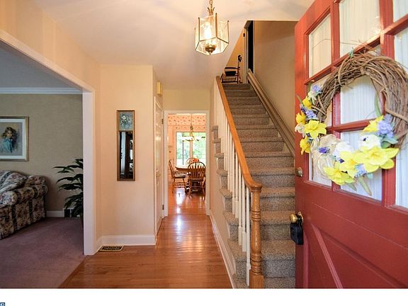Beautifully maintained 5 bedroom, 2.5 bath colonial in desirable Horsham Township neighborhood. Updated kitchen with corian counter tops, hardwood floor, and pantry. Family room with wood burning stone fireplace leading out to covered back patio overlooking park-like back yard. Newer replacement windows throughout. Plenty of storage with large storage closets in laundry room and attic storage from the 5th bedroom. Living room with crown molding. Dining room with crown molding and chair rail.