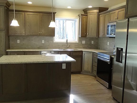 Brand new ranch on 3 acres, has 3 bedrooms and 2 bath. Large open kitchen includes all new appliances. Laundry room has new washer and dryer, also large wash sink. Wide open walkout basement ready to be finished. Wooded lot is gently sloped, in rural location.
