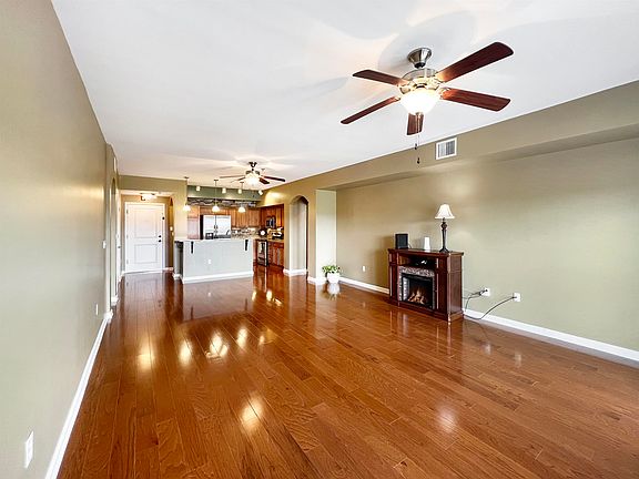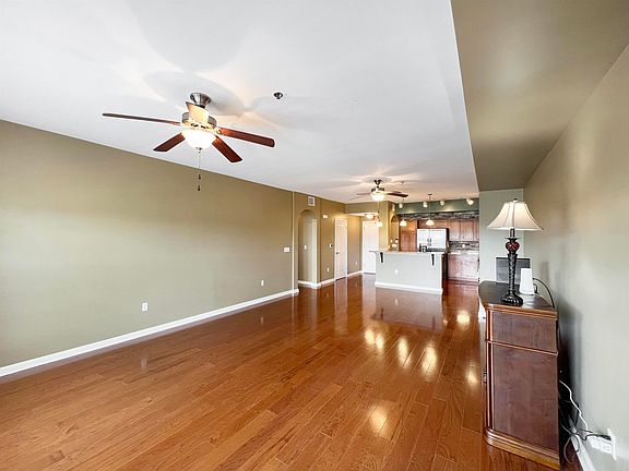 One of the best 2 bedroom plans in State Place! Pretty hardwood floors in the main open area of the condo including the spacious kitchen w/gorgeous back splash, dining area and relaxing den. All appliances remain including the washer and dryer found in the separate laundry room. Split brs. make this one perfect for visitors, roommates or a private home office. Closet and cabinet space are ample. One assigned parking in the garage and 1 un-unassigned in the north lot. Enjoy the city view deck!